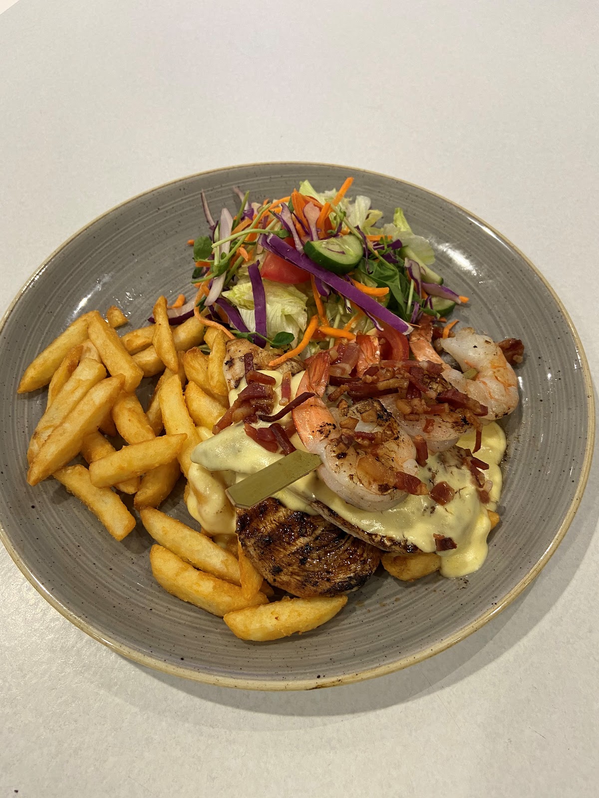 Staying overnight nearby and dropped in to have dinner with hubby. Ordered a small roast of the day, it was very nice and a Thai beef salad, the salad was really nice and generous portion, loved it! ..but the beef slices were very chewy. I finished it tho as I was so hungry ( it was my one and only meal of the day ) The staff were very friendly, polite and helpful, as well as the lady at the front desk who checked us in. They made us felt so welcomed The service was quick. We saw other table having like seafood platter, it looked sooo nice! We didn't see it on the menu? Next time, we will definitely try that
