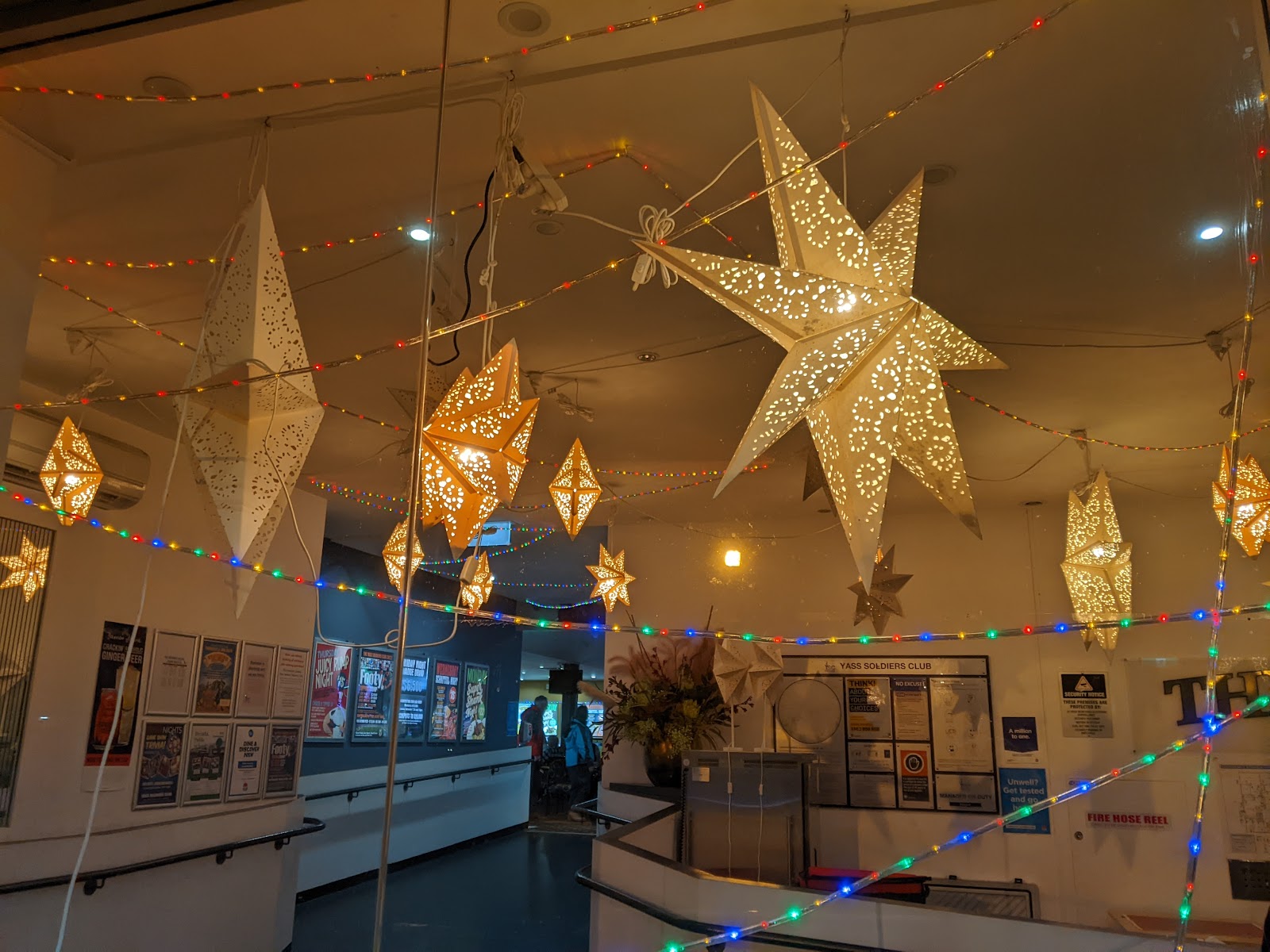 We arrived hungry after driving 2 hours plus from Albury. The entrance had nice star lights on which added to the winter atmosphere. The service was prompt and friendly. I had the crispy Barramundi $29, it was good. I didn't check before and realised they only had potatoes to go with it, would be nicer and more balanced if they include vegies. The roast of the day $18 was plentiful and meat was tender, balanced but lacking in flavour unfortunately. The dessert was great $8.50.