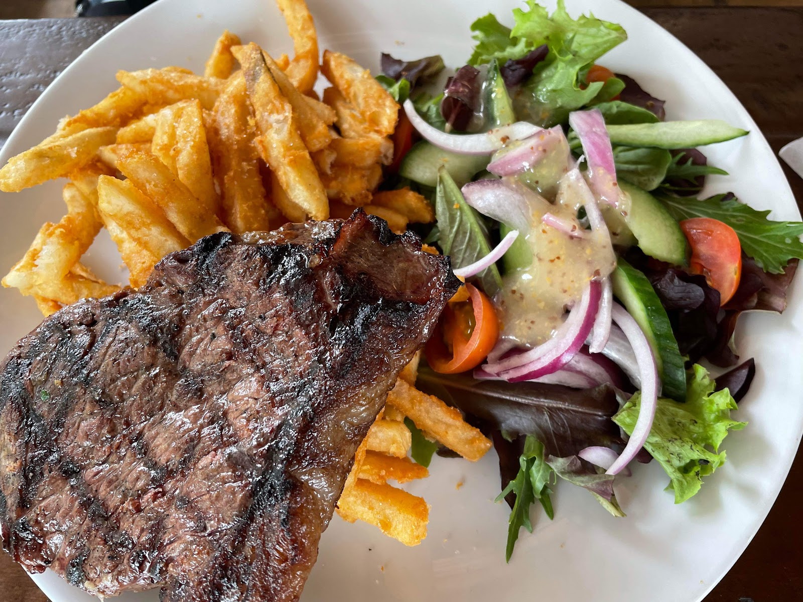 Undercooked chicken Maryland, worst $40 steak I have ever had, awful flavour, fatty, sinewy and gamy! If I hadnt been so hungry, I wouldve sent it back. This place was amazing when it was Frescas but has progressively gone downhill since they changed hands. No wonder the place is half empty in what is supposed to be the busiest night of the year after the Bangalow show. I will never be back until I hear that the place is under new management. What a shame. This is supposed to be in my local!