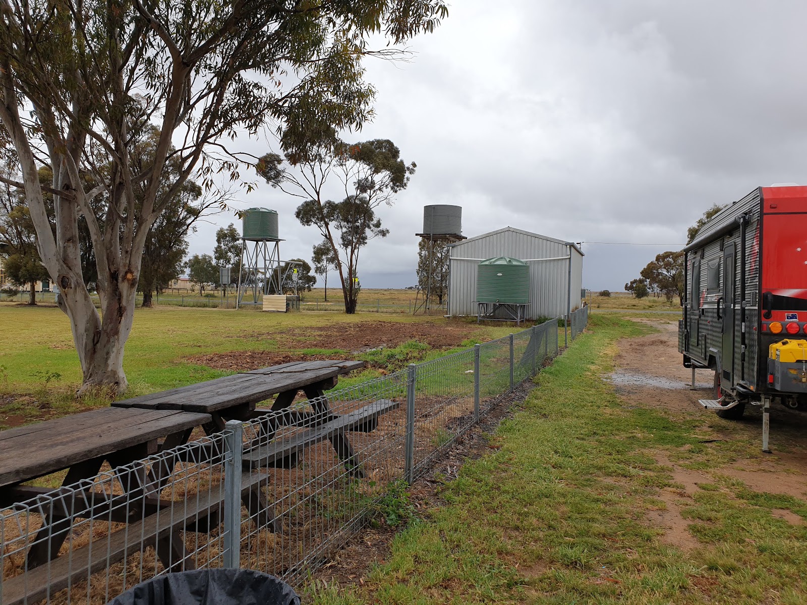 Pulled up on hwy to get details of road closure to Hillston Happened to talk to local publican who advised that road closed at least until next day. Invited us to camp in pub grounds. Will eat at pub tonight. Typical outback. !!