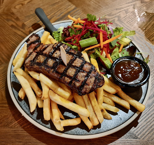with choice of chips/salad or mashed potato/steamed vegetables and choice of sauce. grainge msa graded 120 day grain fed beef