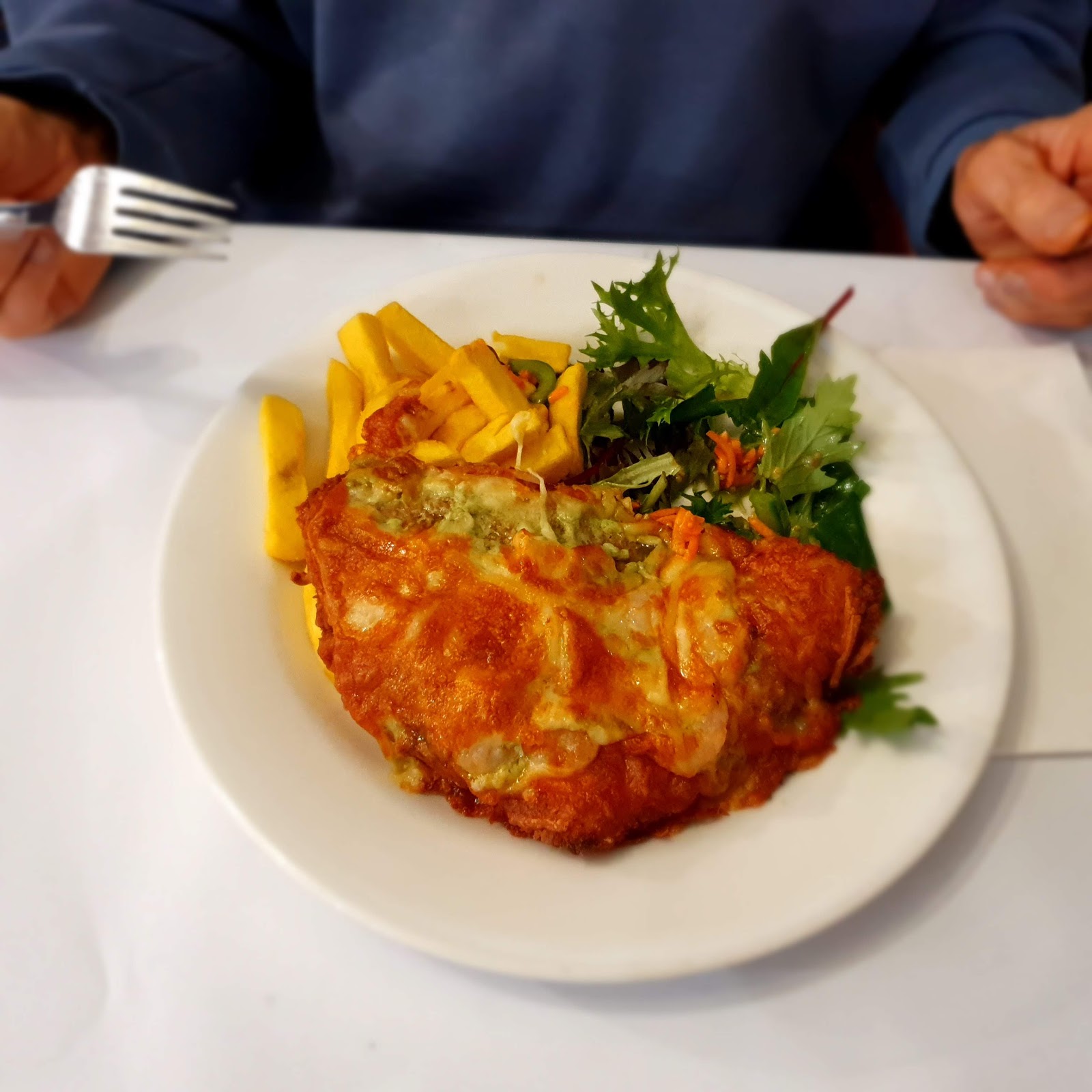 The staff were pleasant enough but the dish I had was a real let down. I ordered the seafood plate... The fish was so over cooked the fish crumbled and Prawn cutlets were very small almost all crumb with a tiny piece of Prawn on a very over cooked tail. The chips were just warm and very dry the salad was limp but the dressing was nice. All in all not a good experience in a meal. You be the judge if you go.