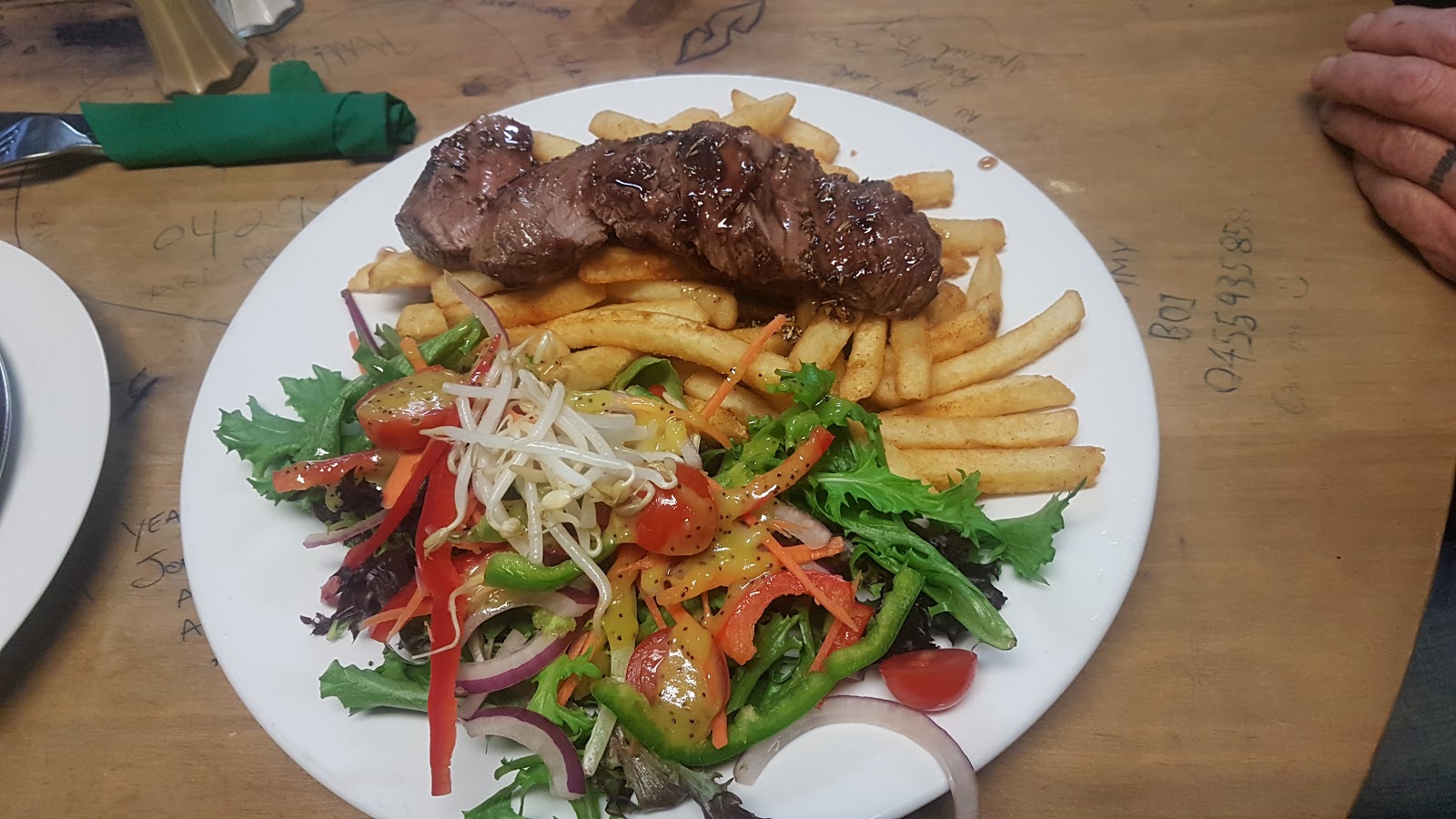 We walked in the door to great bar service and a good chat. There is an unreal area off to the side to have a game of pool and a couple of beers. The steak was cooked to perfection with lovely fresh veg and chips. 10/10 would recommend this pub