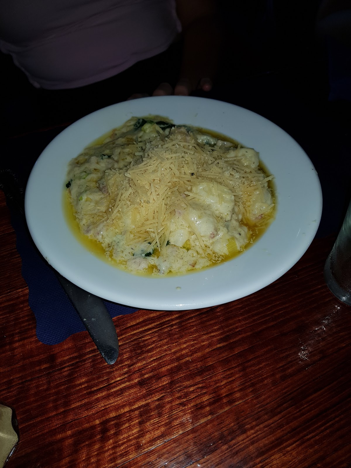 I dont have a great deal to say that is great about the new menu or wait staff. The atmosphere was very dull. No back ground music. The wait staff very green we got garlic bread and brusscetta but no side plates. The garlic bread was burnt but the brusscetta was nice. 3 of us ordered gnocchi and well under cooked. The carbonara was extremely oily and the bolognaise had a very bitter taste. We has one rissoto which was good. The kids meals came out quick but no tomato sauce. When asked for sauce we got a mank squeeze bottle. Overall I rate the whole experience a 4 out of ten. Early days thing may get better