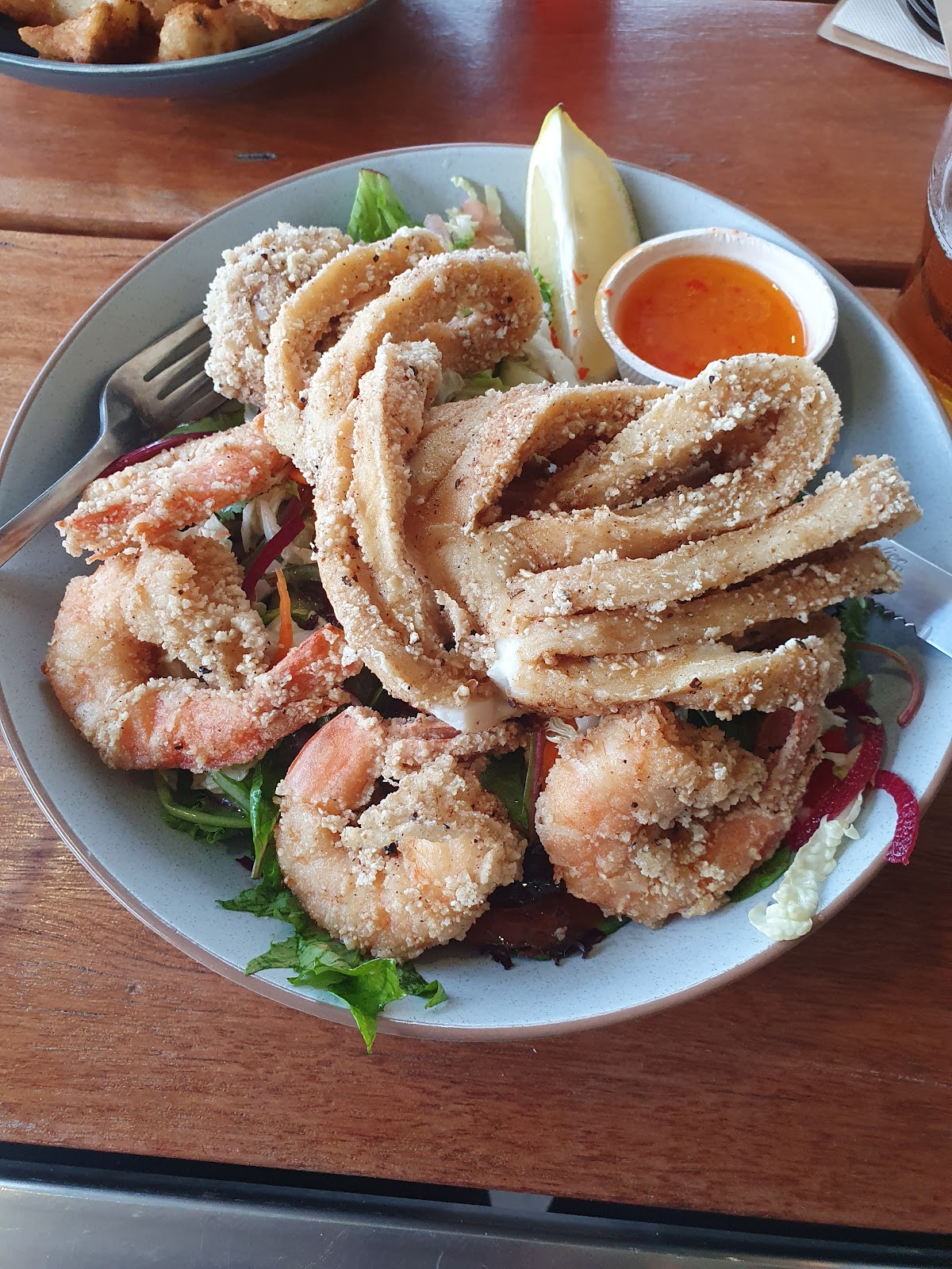 Stopped for lunch and had the fish and calamari with chips and salad. Small serve of fish and 3 calamari not spoiling me in size but was enjoyable. Its a popular place and is busy.