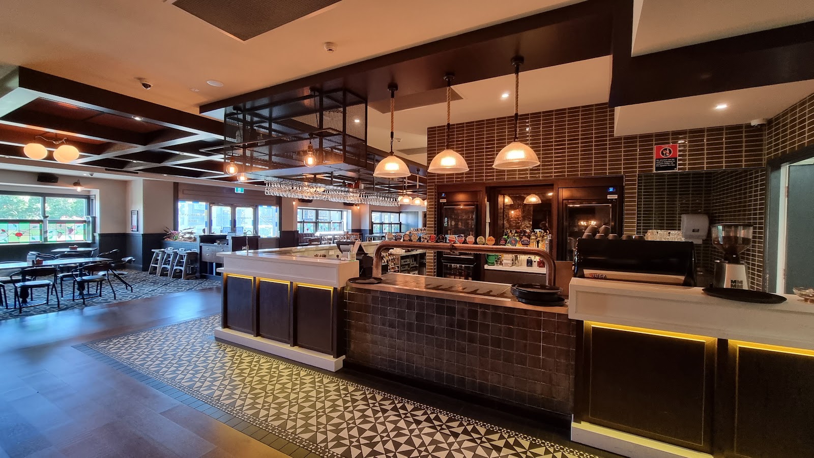 Overall the area is beautiful and lots of options for beverage, however our groups chicken wasn't cooked very well, some sections of the meat were raw. I had a friend later few days after comment the same on the chicken schnitzel. Would have felt more comfortable with a well cooked meal. Was concerning to hear the same comment days after.