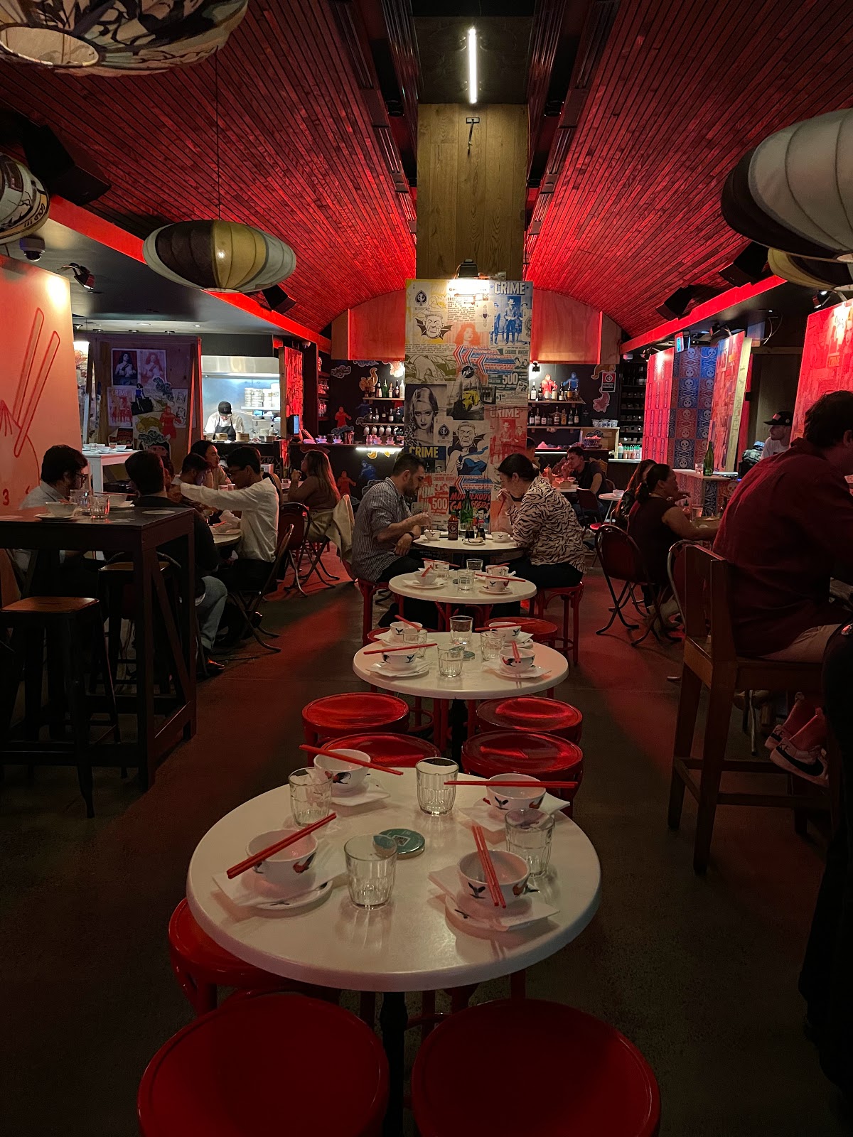 Good place to come in a larger group setting so you can try multiple things. Its almost like yum cha but not. The vibe of the place was almost like a modern, artsy, alternative white washed Chinese bar. There were all these retro posters/artworks on the walls, almost like you were in a London graffiti tunnel. The seats were quite tightly packed in and it was a little difficult to get around! This is a merivale restaurant, so expect merivale prices - the serving sizes were quite small (and most dishes were dumplings, so best to come in a group of 4, or multiples of 4). I tried the scallop and prawn shu mai, prawn har gau, wild mushroom dumpling, chicken and chive dumpling, and the cuttlefish fried rice. Apparently the pork xiao long baos were also quite nice, but the steamed buns werent popular amongst the group! The staff were super friendly and on it with the water refills and serving speed. The food was good, but serving size (relative to price) was probably a bit small / expensive (particularly the fried rice!)