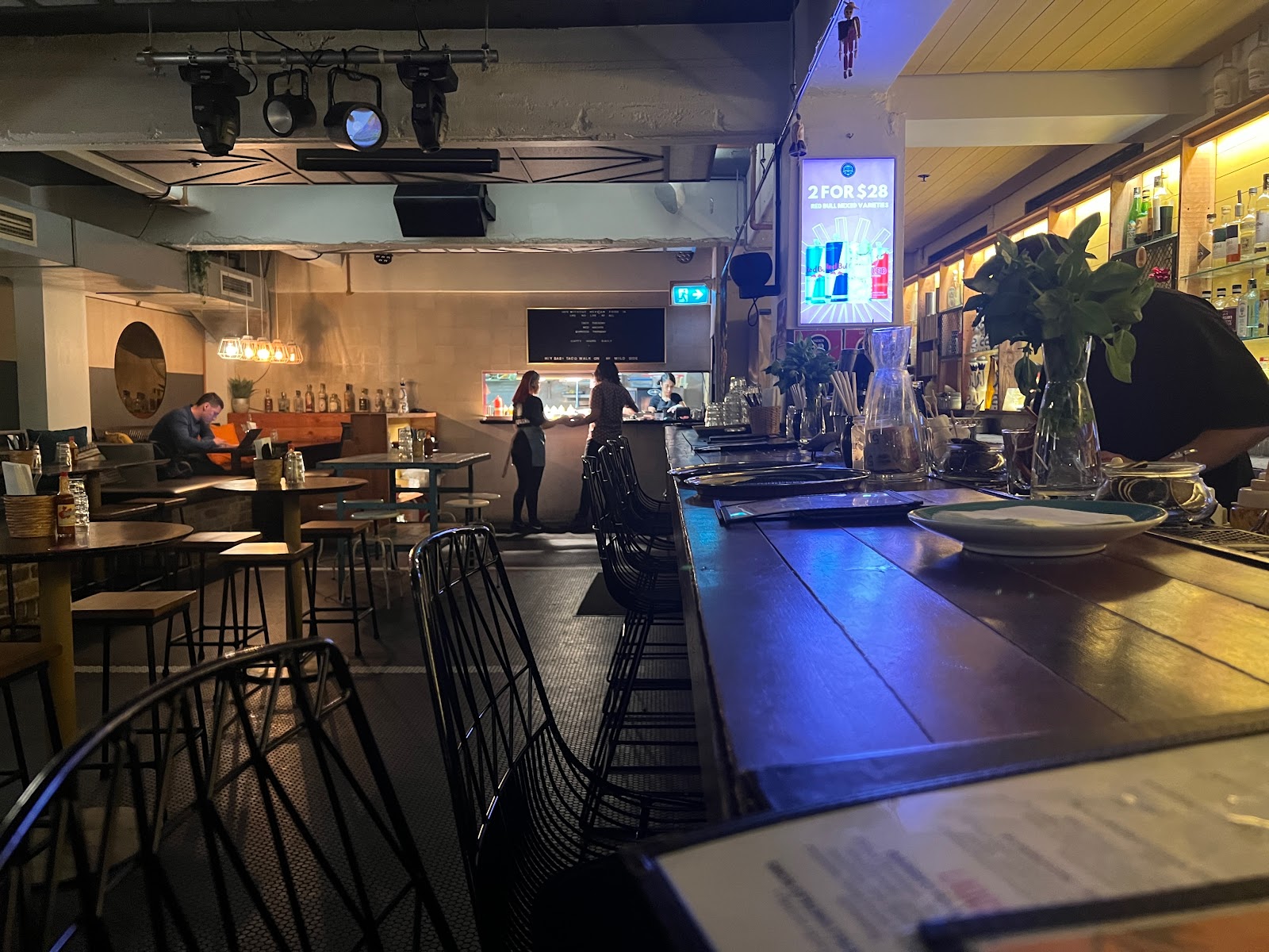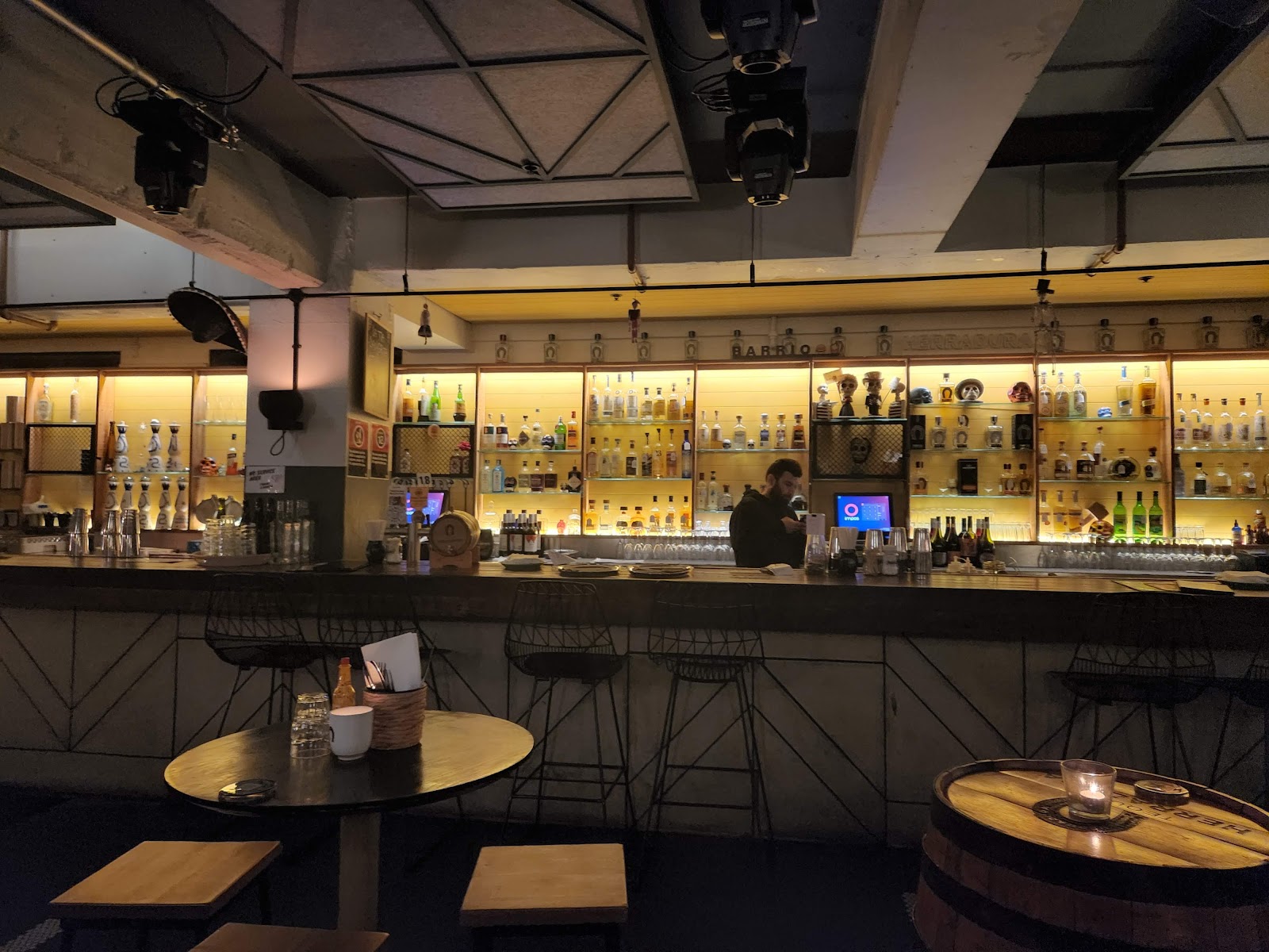 Barrio Cellar is located very centrally, next to Martin Place, making it super easily accessible. However its underground a little tougher to find. The venue is very nice, sadly there was some trouble with the electricity, so there was no music playing and neither were the orders going properly. But the service was nonetheless great. The staff was super proactive and eager to accommodate everyone. We ordered some aperitifs, jalapeo poppers and two mains, a burrito and a chicken burger. Super tasty!
