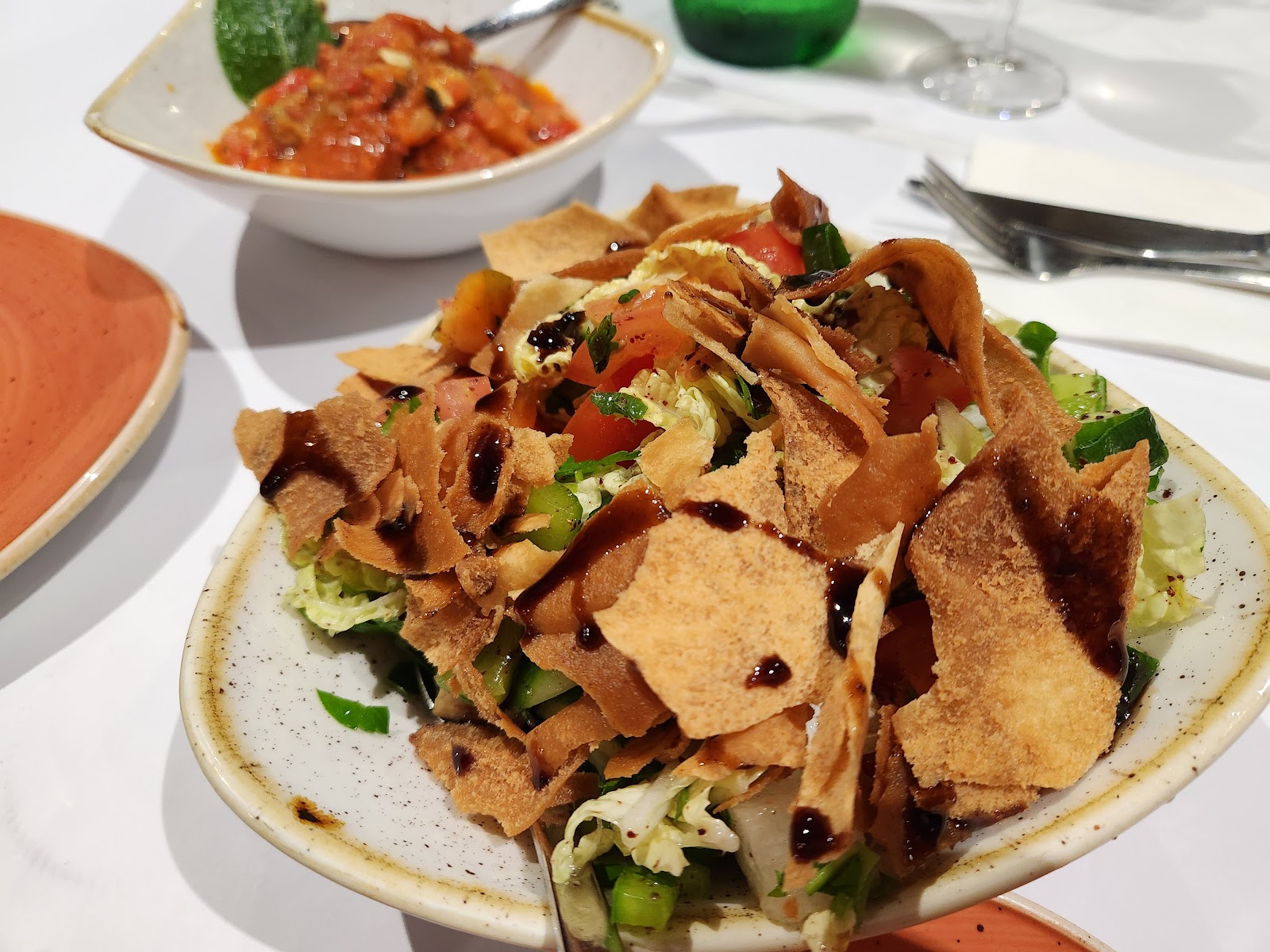 Good Lebanese food but noisy crowded environment and not too environment friendly. Waiters gave us the menu to circle the dishes and they still can't remember which wine we ordered. The Lenanse white wine was average.