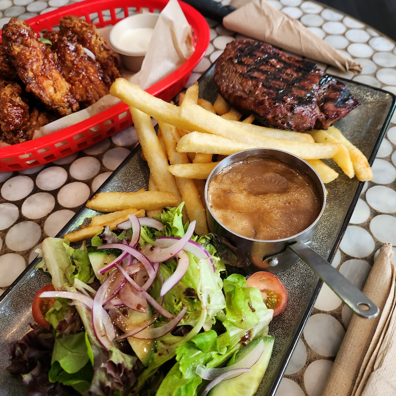 We went for pre drinks before dinner but we got food as well xD pretty big portions actually!! Chips are nice and crispy, wish they gave us options to choose aioli or tomato sauce cuz I would've preferred tomato sauce. Chicken was quite okay, we chose the spicy flavour, bbq was the other one. Not bad! The sauce with the chicken didn't go too well together though I thought! Staff are friendly and the atmosphere is good for a casual catch up with friends :)