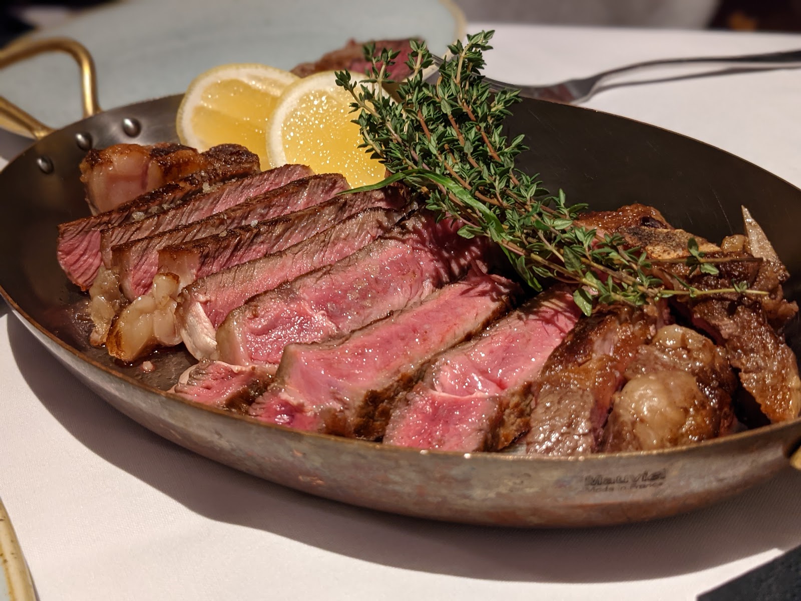 I was invited here for lunch by an old friend who works across the road from it. I had no idea this place existed so it was a pleasant surprise to get to the restaurant with crisp white tablecloth and well dressed waitresses and waiters. Menu is small and unless they have a separate vegetarian menu, the choice was very limited for veggie options. There are a handful of starters and mains and some dessert options. I had the steak frite which was cooked to perfection and came with nicely cooked fries. The sauce was delicious and I loved my meal. Service was on point and the staff were quite efficient albeit slightly aloof. Happily come here again for a long lunch :-)