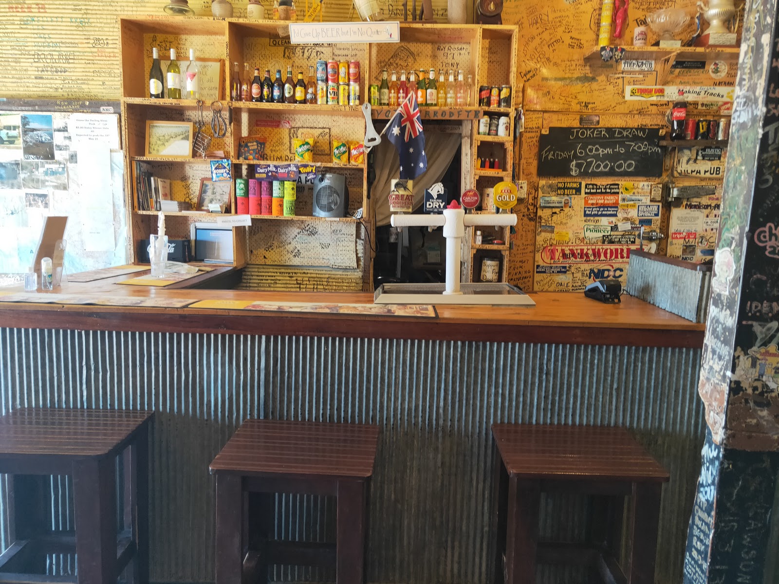 Great outback pub with friendly staff and customers. We had a great lunch and dinner and a fun night around the fire drinking beer and listening to local yarns.
