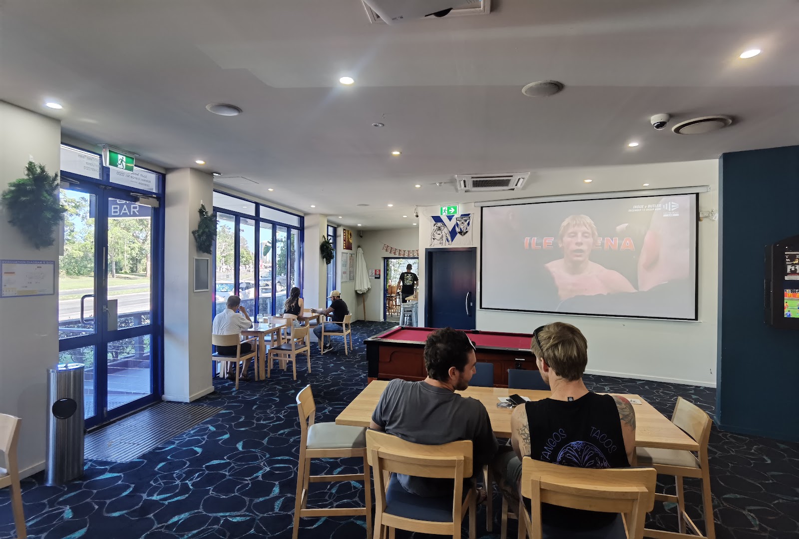 Nearly perfect. Food was 10/10 better than outback steakhouse. The ribs were next level. But the lighting for the UFC was way too much for the projector. Get an electrician to disable the lights on another circut by the projector screen so it doesn't ruin the picture and put some blackout curtains by the windows. You would get all of Tweed to watch UFC here with the prices you have.