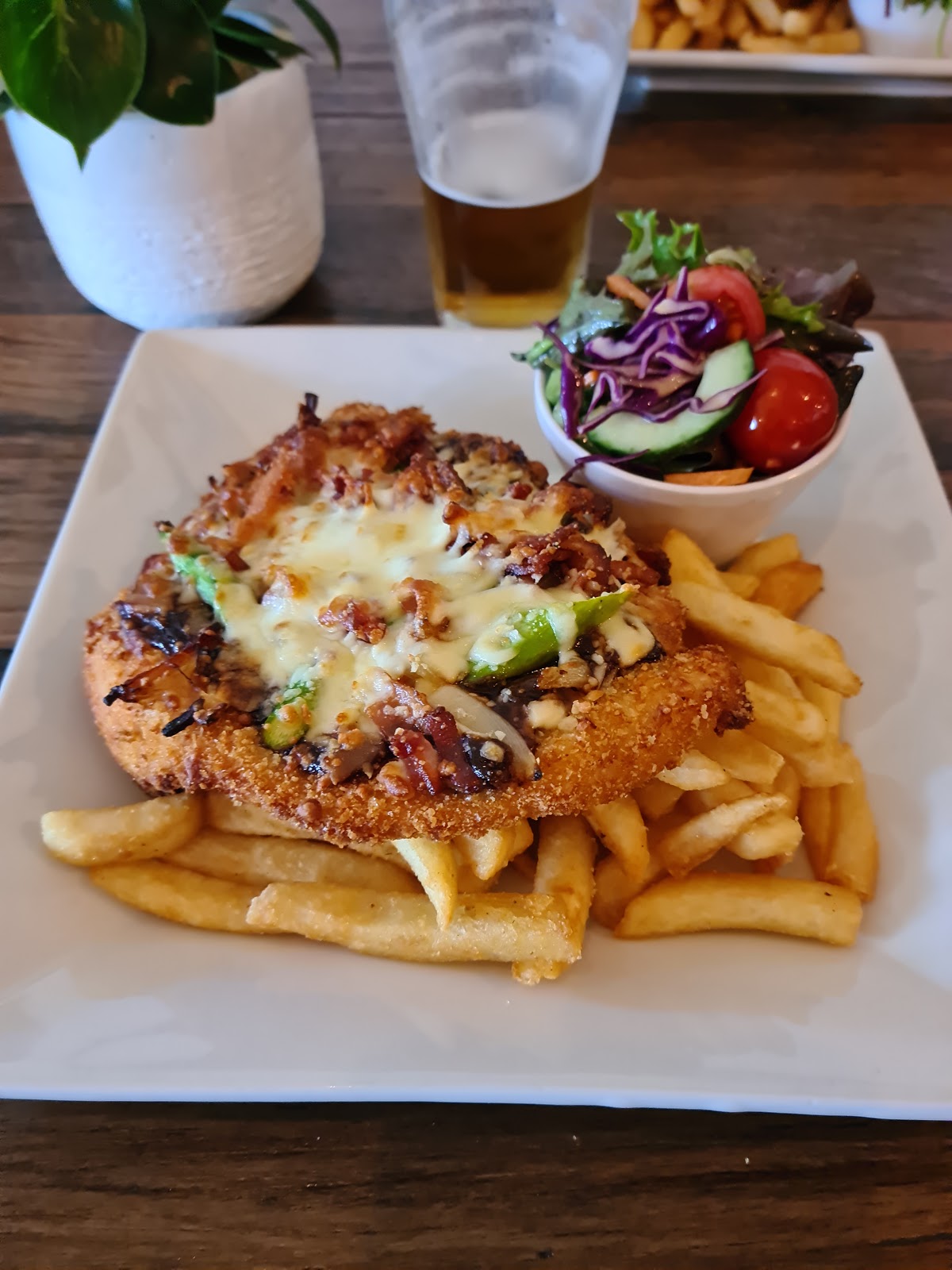 The best club food ever I ate the beef curry and it was so tender and soft. Serving was large and could have been shared with another chicken schnitzel was home made . Parking out front service was high and regular. Would recommend this place to snyone passing by.