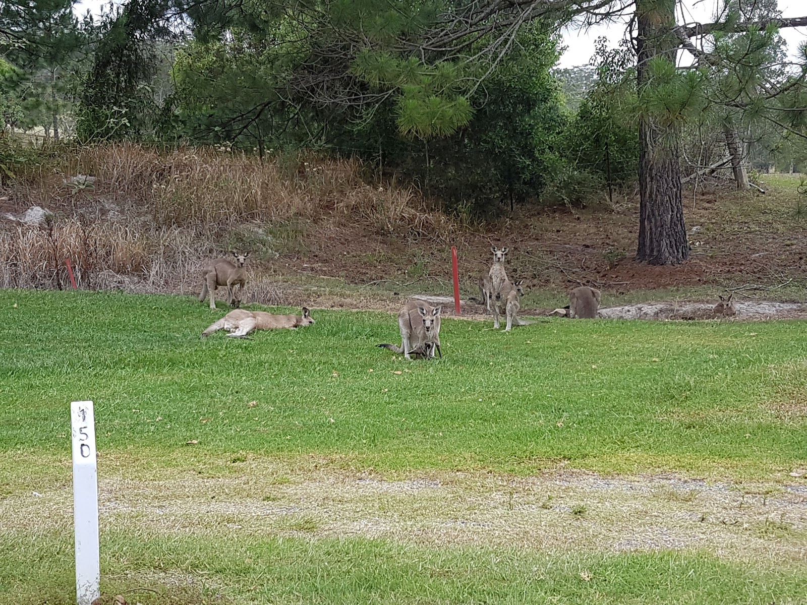 Played 18 holes at Kew for the first time and although I wasnt quite on my game the course was good. Greg gave us a course map as there is a bit of crossing over. 1st Tee I managed to hit the overhead power lines and then did it again coming back on hole 2. Each tee off gives hazard info for strategic distances. Plenty of Kangaroos racing around but none added to the water hazards luckily. We walked the course and took about 3.5hours. It was pretty quiet so no hold ups but a few lost balls.