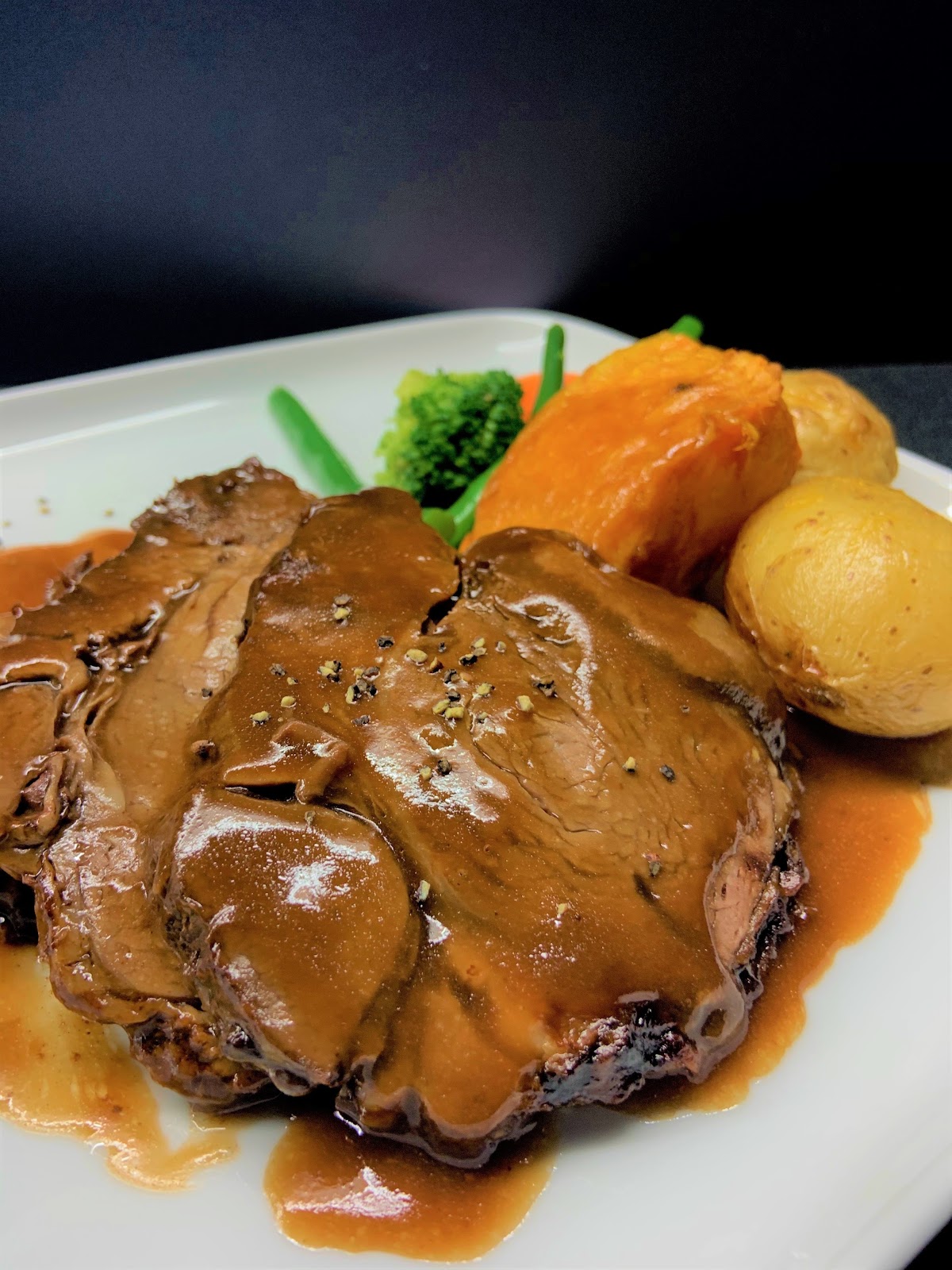 Roast Beef meal for lunch today. What a huge meal enough to feed 2 people. Lots of roast beef, gravey, roast potatoes, pumpkin, beans, zucchini, carrot, colliflower and brocholi more than I could eat. They never disappoint. We would definitely recommend having a meal there.