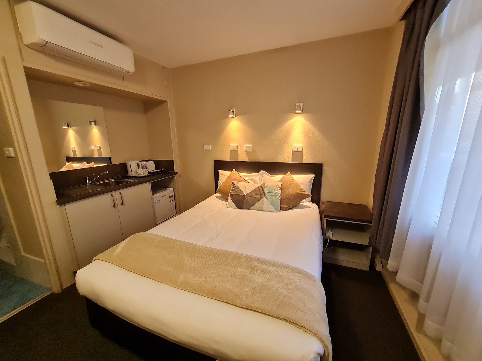 The family room was basic, but it was roomy, comfortable, and clean. We also stayed in their twin room on another night, but it was small and the aircon was very old, which needed a good cleaning or replacement. I love the retro style of the exterior of the motel. I think it would have been good if they also added some retro touch to their rooms but it is a budget-friendly motel after all. The restaurant/pub looked great, but the food was just okay. The location was great, a walking distance of shops (check out Harris Farm!).