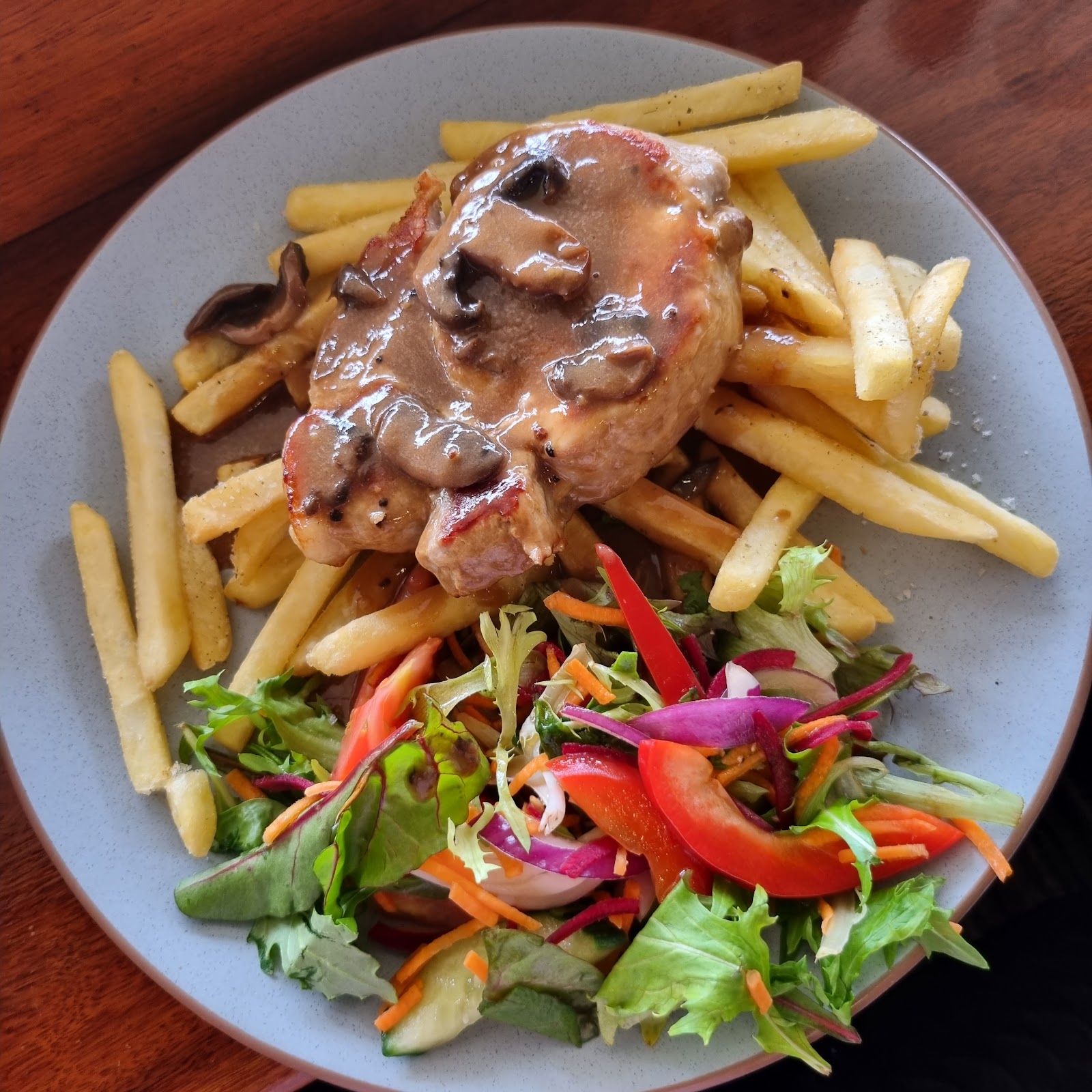 Stopped for lunch and had the fish and calamari with chips and salad. Small serve of fish and 3 calamari not spoiling me in size but was enjoyable. Its a popular place and is busy.