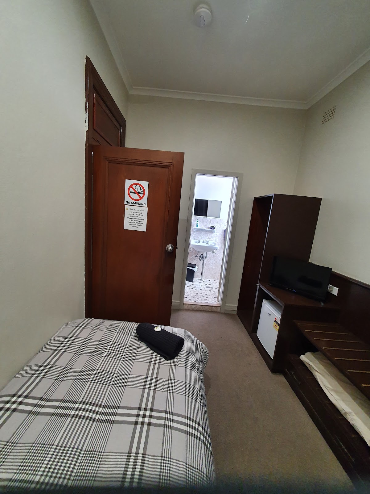 We stayed here for 2 nights and the room was quite comfortable. We made sure we booked a room with a private bathroom. All the rooms are upstairs, the only one downstairs is the 2 bedroom apartment. The meals are fantastic and can highly recommend eating here. If you happen to be in the bar when the husband and wife owners are in, you will be assured of a great time. They are wonderful to talk to and are also very helpful too. We can highly recommend a visit to the New Crown Hotel.