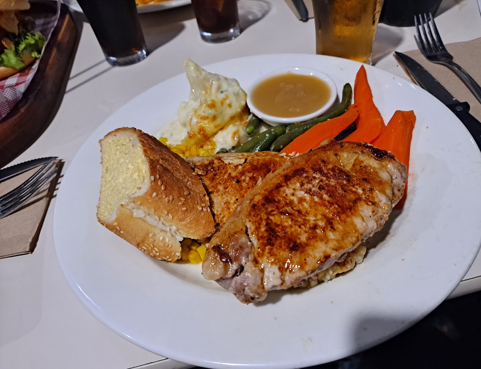 Im known amongst my friends as foodie because of the amount i eat and how fussy I am at the same time, I ordered a bruschetta which would have fed 3 it was loaded with toppings and just the right amount of balsamic on top, THEN came my mixed grill, thankfully I walked to the hotel as Ill need to do 3 laps around the town to get it all down the serving was huge and everything on my plate from the sausages, rissoles, lamb loin chop , bacon and everything else I forgot in my food coma was cooked to perfection, I now have another reason to holiday in Hay again every year, the bar staff and everyone working here all had big smiles you honestly couldnt ask for a better experience