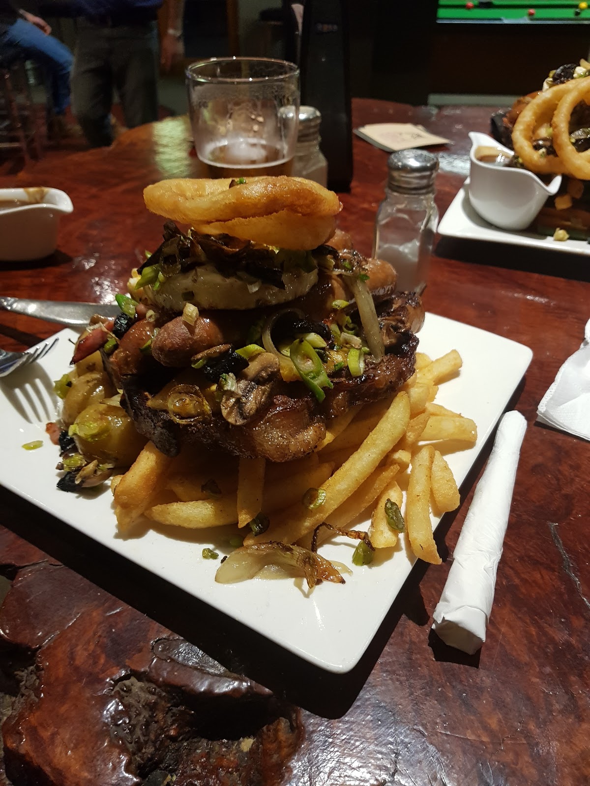 Fantastic meal after a long day travel. Huge meals! The veges were cooked perfectly. Also with the wide streets around the pub it was easy parking with a trailer.