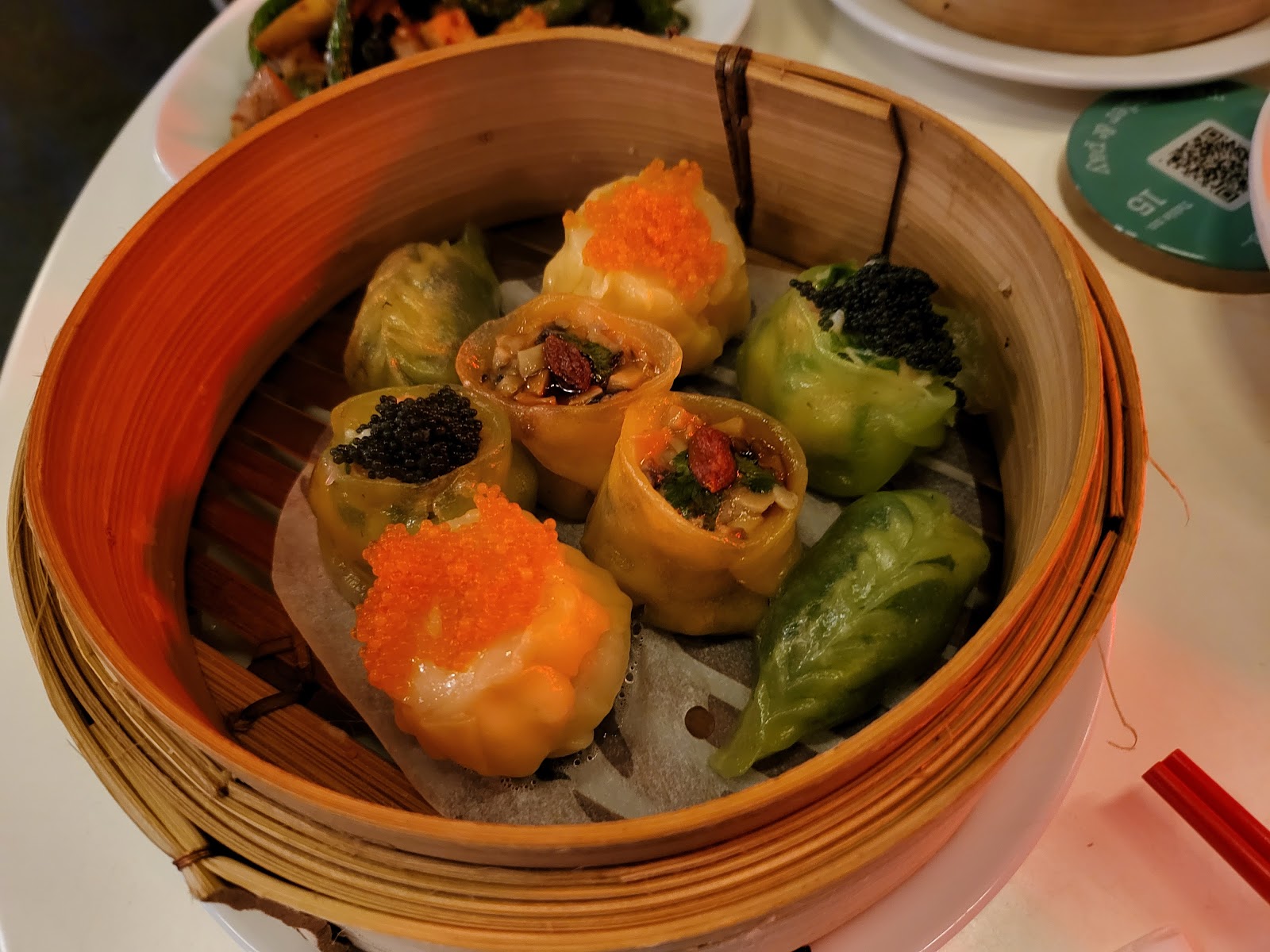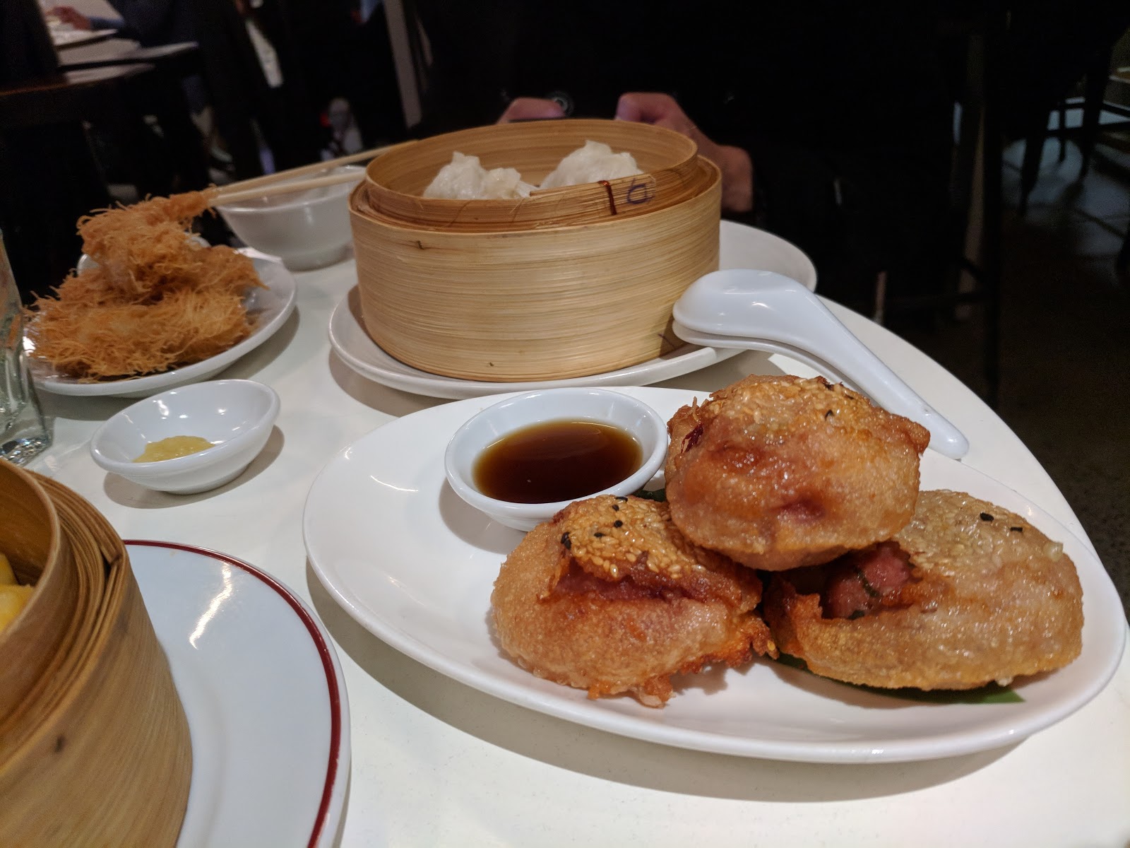 Good place to come in a larger group setting so you can try multiple things. Its almost like yum cha but not. The vibe of the place was almost like a modern, artsy, alternative white washed Chinese bar. There were all these retro posters/artworks on the walls, almost like you were in a London graffiti tunnel. The seats were quite tightly packed in and it was a little difficult to get around! This is a merivale restaurant, so expect merivale prices - the serving sizes were quite small (and most dishes were dumplings, so best to come in a group of 4, or multiples of 4). I tried the scallop and prawn shu mai, prawn har gau, wild mushroom dumpling, chicken and chive dumpling, and the cuttlefish fried rice. Apparently the pork xiao long baos were also quite nice, but the steamed buns werent popular amongst the group! The staff were super friendly and on it with the water refills and serving speed. The food was good, but serving size (relative to price) was probably a bit small / expensive (particularly the fried rice!)