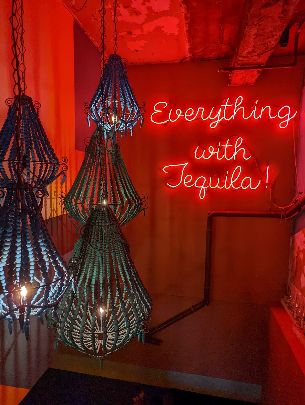 The place has a pretty good ambience Cocktails weren't worth the tag, and presentation was honestly kinda pathetic for today's standards.. Shoe string Fries were amazing Tacos worth an Instagram post but to be honest did not make a tasteful impression But hey I guess everything would taste better than a tequila. So if you visit make sure to have a shot before you eat the food. It will definitely help you swallow it.