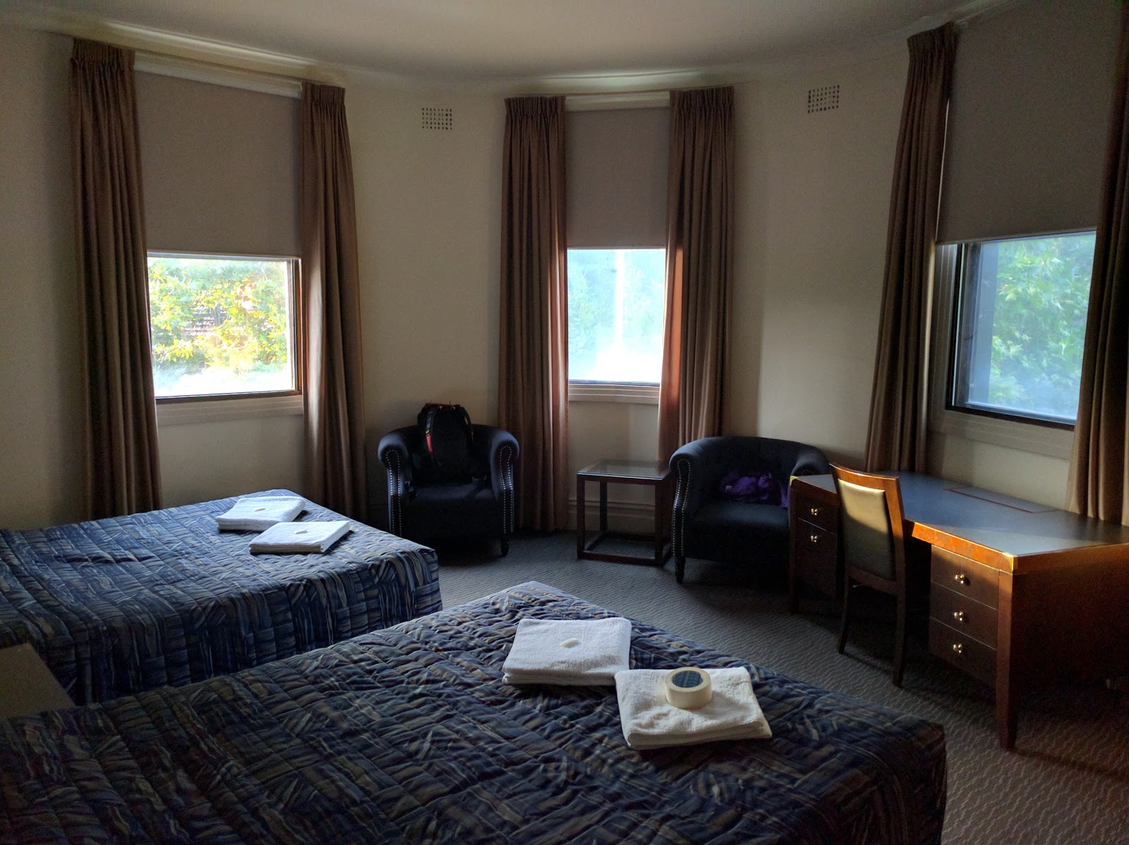 This was my last hotel during a four week Australia trip, and it may just have been the best one as well. Huge, cozy rooms with beautiful furniture, friendly staff, perfect location right across from Central Station, and extremely good value for what you get. Plus, there's a super-cozy pub downstairs, with food that's both inexpensive and very good. Perfect stay.