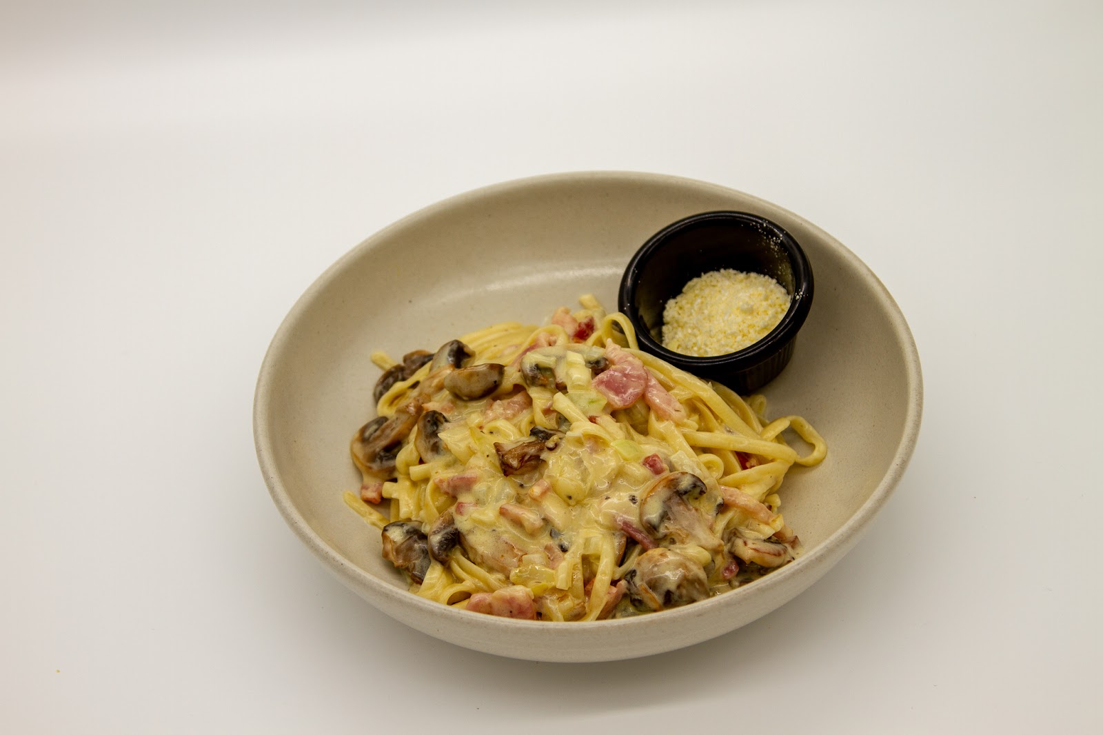 Tomato, cheese, ham, mushroom, onions and bacon