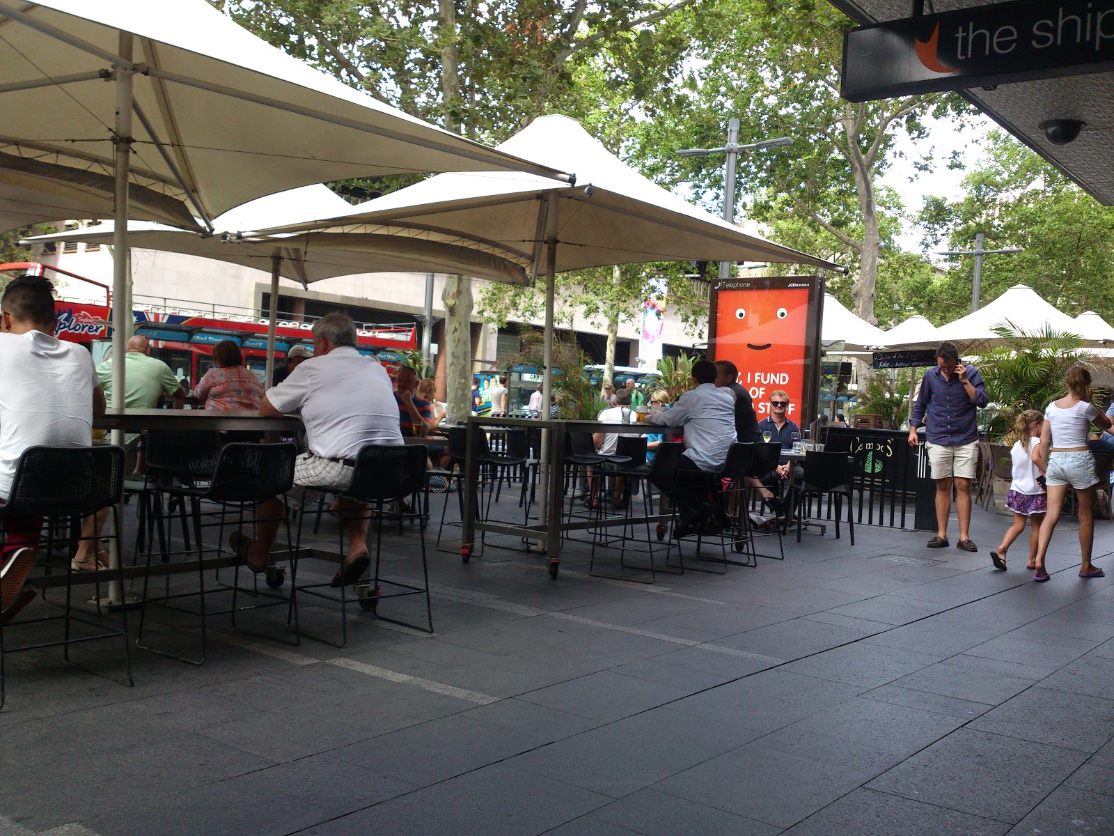 Sneaky stout on a winters afternoon Ride home Good location close to Circular Quay. Very historical part of Sydney. Great to watch the passing parade. Tables on the concourse are comfortable on a sunny winters afternoon. Not my usual type of venue but on the day