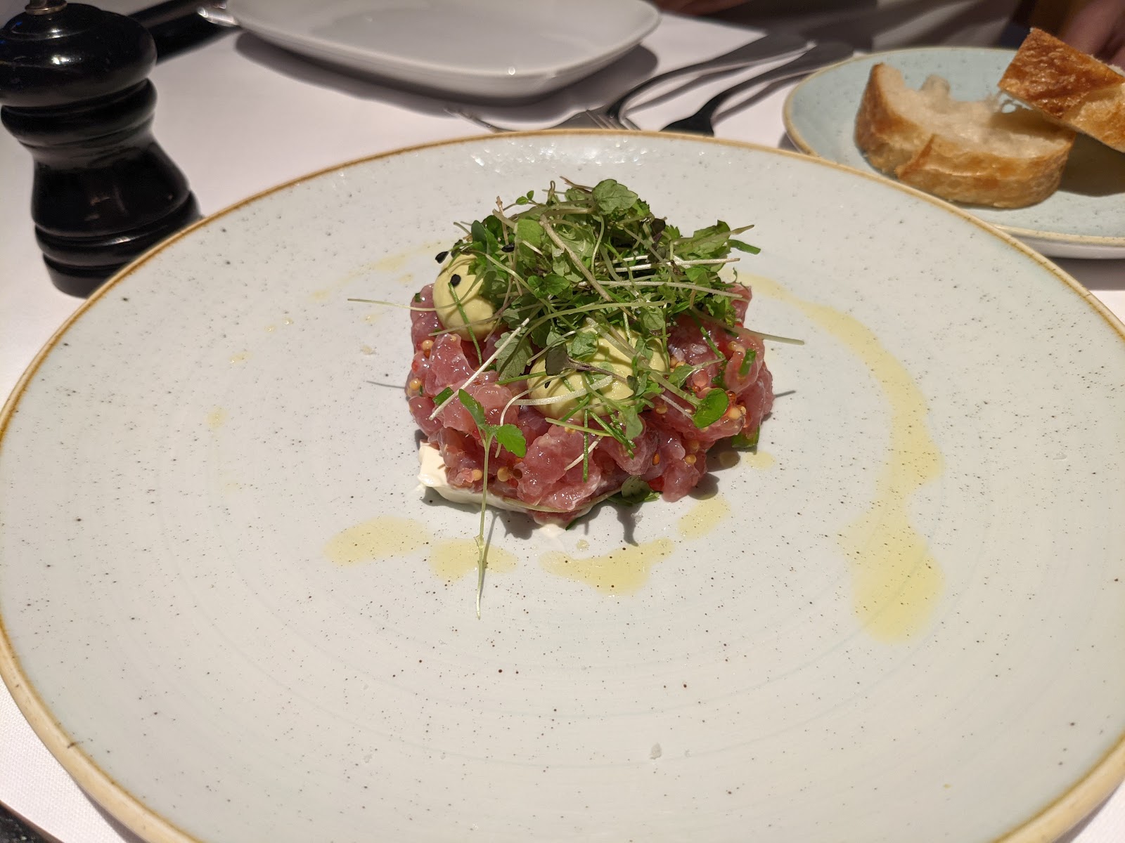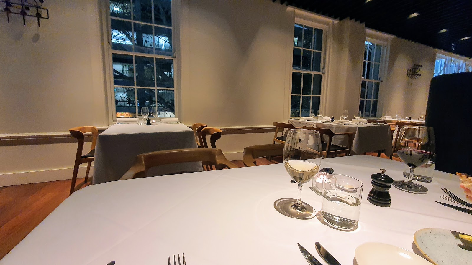 Very modern dining room with warm and attentive service. Starting with the bread, everything was well above expectations,the oysters were very fresh and the crumbed prawns were cooked perfectly (the pictures don't do it justice). We each had steak with truffle sauce and the steaks were cooked perfectly but the truffle lacked smell. Loved the mushy peas and chips. Wines were fairly priced and we were too full for dessert...