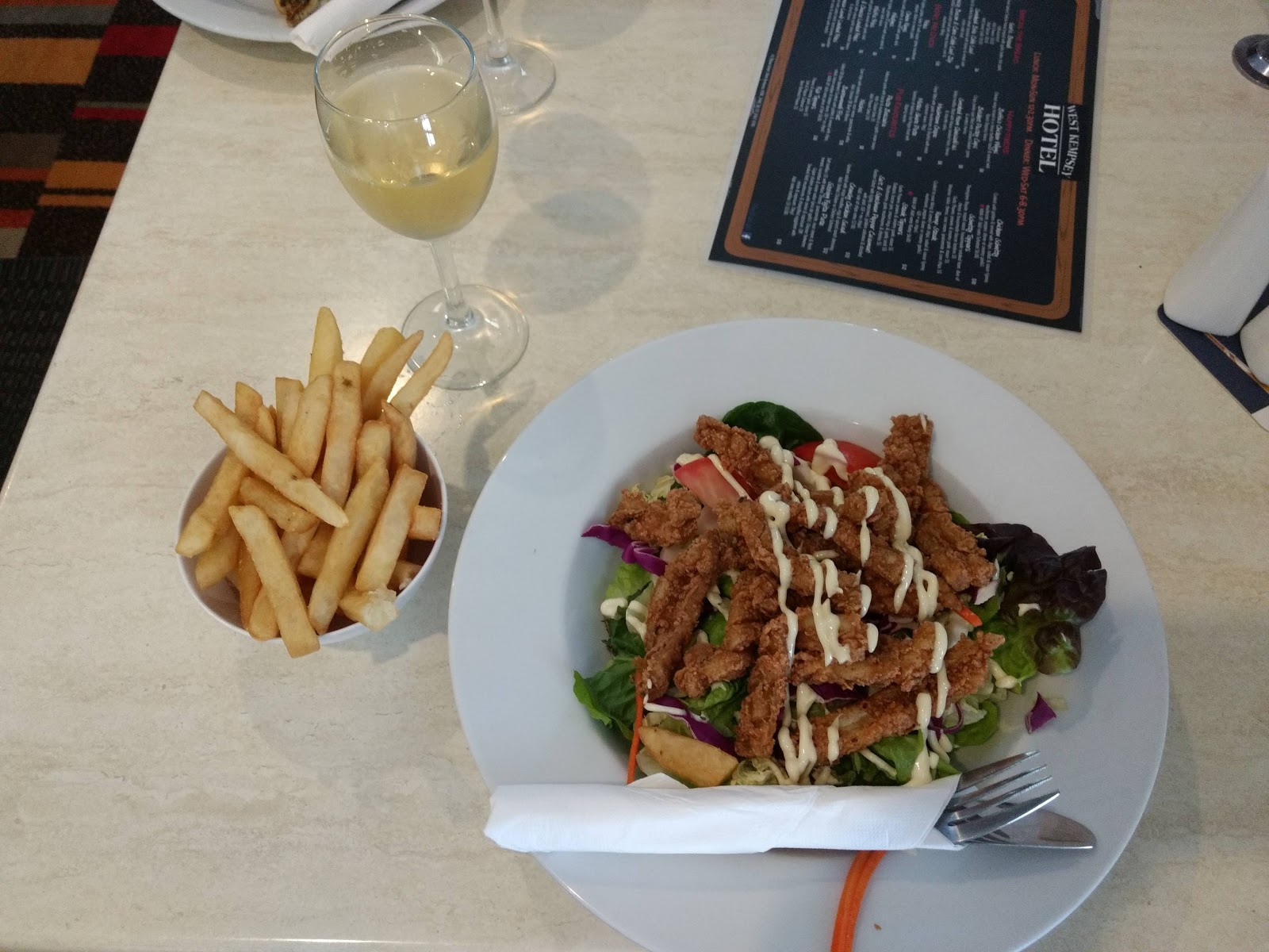 The hotel has just been refurbished in the dining room & outside dining area. Very comfortable and clean. New bar area for diners, besides the front bar still for regulars and serving front verandah. The menu has a lot more choices and hard to pick what to have as so many tasty sounding choices. Chose the crispy skinned grilled Barramundi with garlic mash, asparagus & spinach. Lovely presented and the most succulent fish I've had in a long time. My friend had the Moroccan spiced 4x lamb rack with chats, veg & red wine jus. Again presented beautifully and tasted absolutely delicious. I'll be going back to try their Mexican choices in tacos and fajitas and more. Besides the other delicious sounding meals. Their bottleshop has been refurbished and extended too. On top of all that, the staff and service was wonderful and done with helpful assistance and a smile. You can't go wrong with the new changes of Kempsey's "Top" pub, the West Kempsey Hotel.